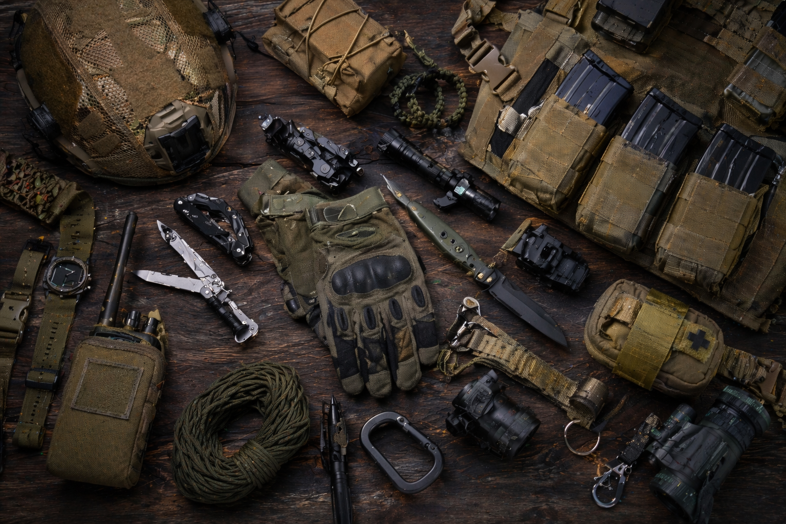 Тактичний мультитул — компактний набір інструментів, що дозволяє виконати більшість дрібних ремонтних та польових операцій без окремих інструментів. Leatherman, Gerber, SOG — перевірені виробники із підтвердженою якістю. Тактичний ніж — окремий від мультитулу, завжди доступний одним рухом. Для польового застосування оптимальна довжина клинка 9–12 см, фіксована конструкція (не складаний) для міцності та надійності при тривалому польовому використанні.